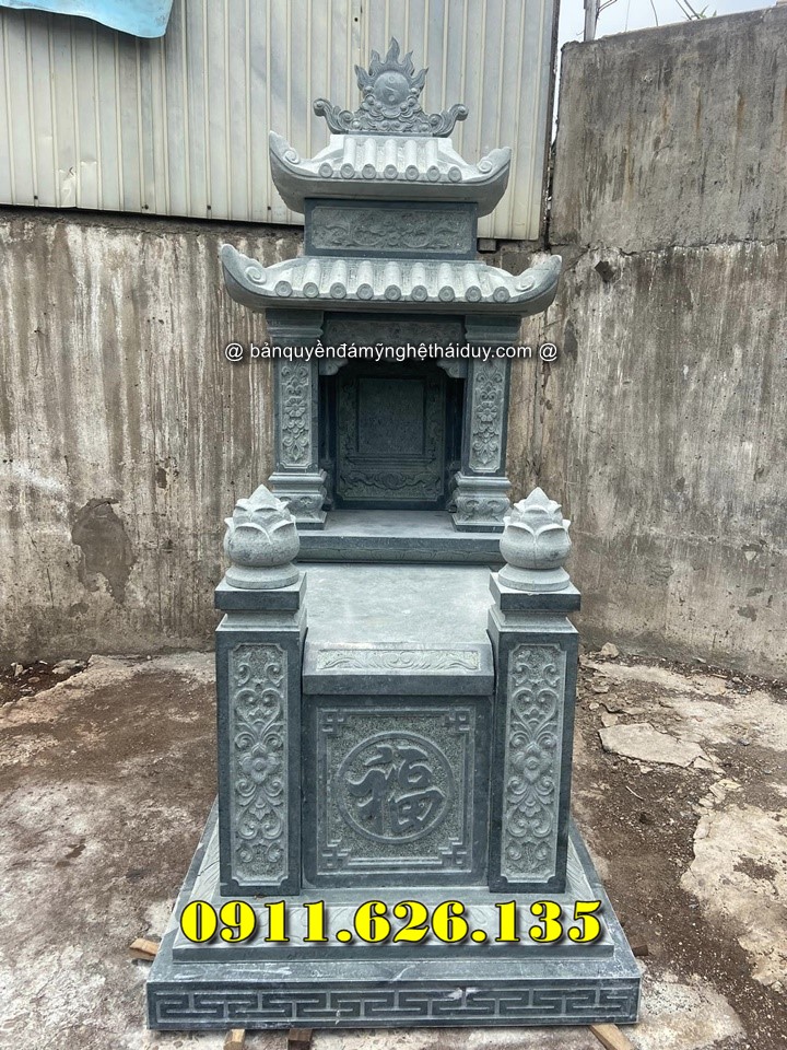 Nên chọn các mẫu có hoa văn chạm khắc nhẹ nhàng để giữ nét cổ kính và trang nghiêm. Đá xanh đen hoặc đá vàng nhạt là lựa chọn phổ biến.