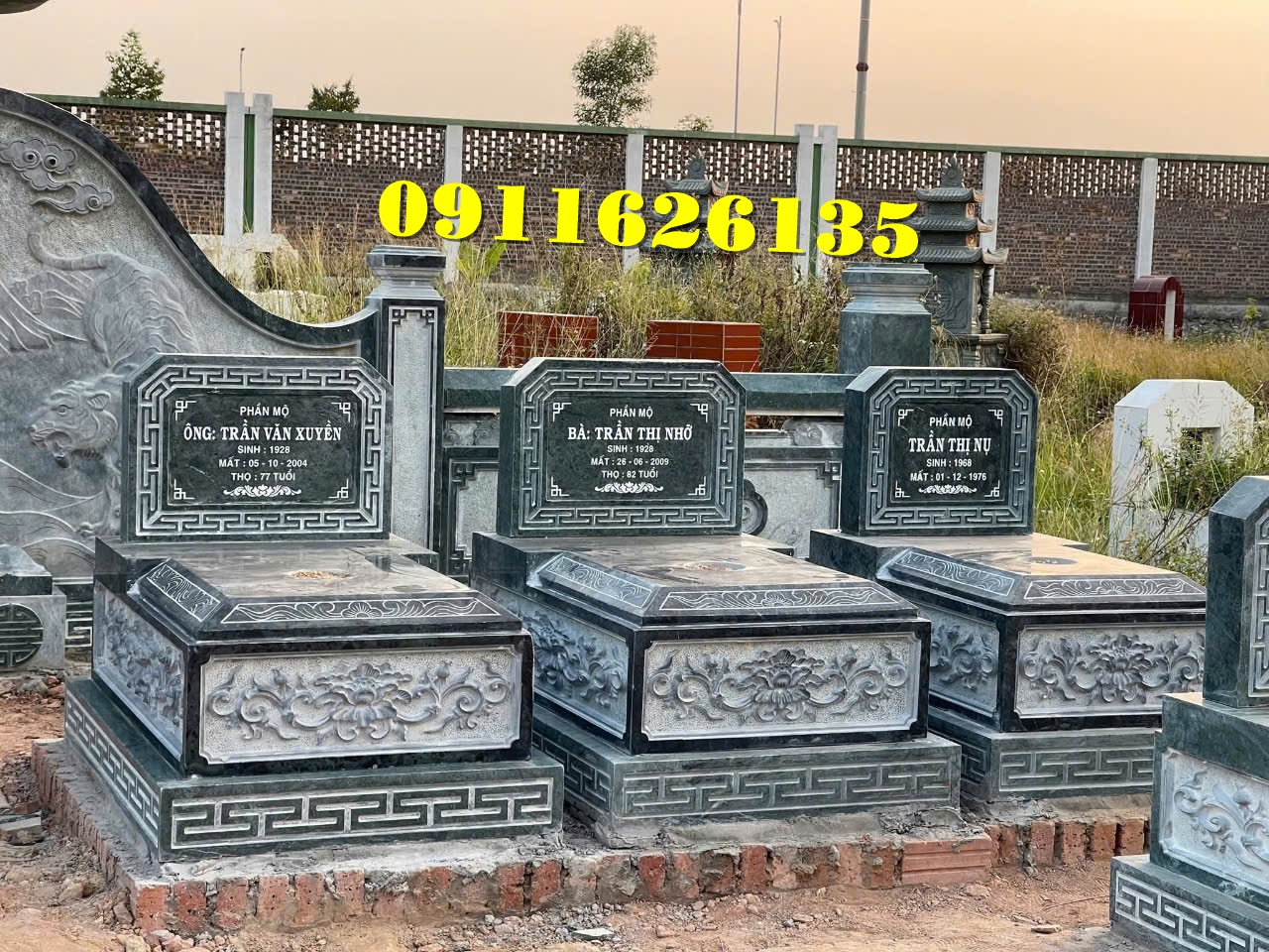Giá bán Tại Trà Vinh: Tùy thuộc vào chất liệu đá (đá xanh đen, đá trắng, đá hoa cương), giá dao động từ 25 triệu – 50 triệu đồng/mộ.