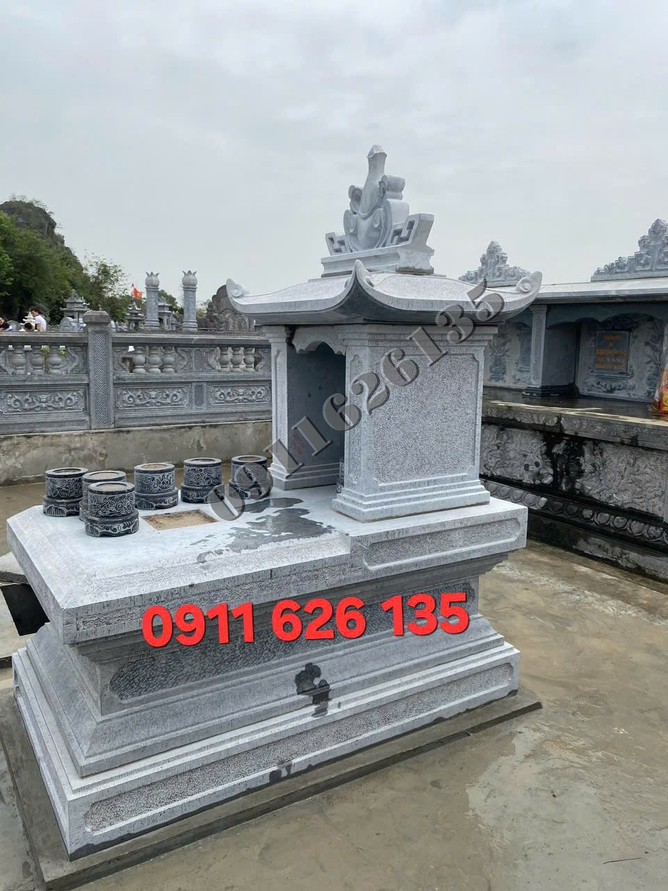 Giá bán Tại Trà Vinh: Dao động từ 18 triệu – 35 triệu đồng/mộ, tùy theo chất liệu đá và độ tinh xảo của hoa văn chạm khắc.