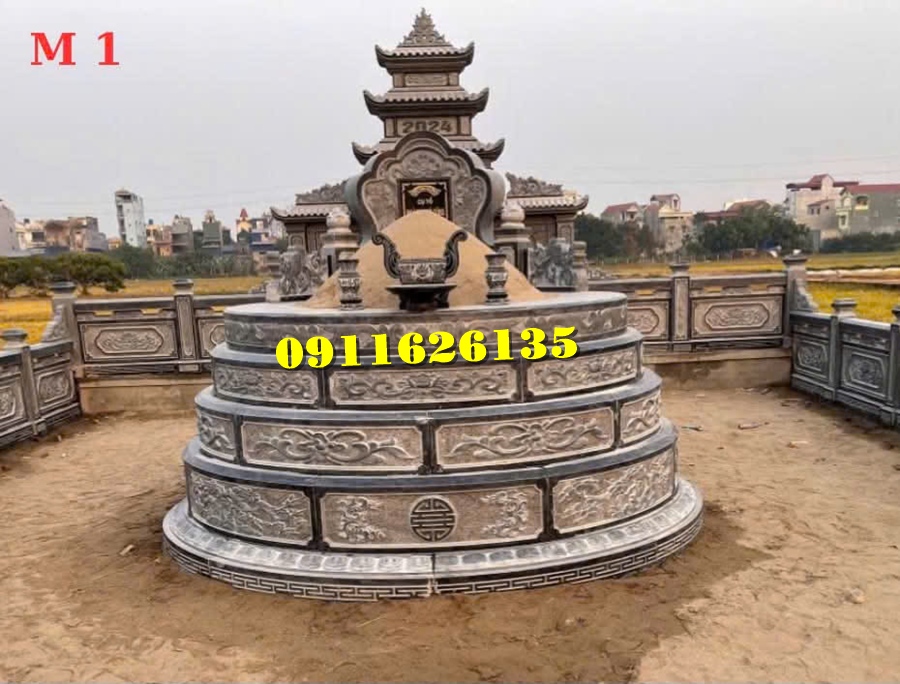 Mộ đá tròn là kiểu mộ có hình dáng tròn đều, tượng trưng cho sự viên mãn, trọn vẹn và vĩnh cửu. Trong phong thủy, hình tròn mang ý nghĩa luân hồi, sự nối tiếp không ngừng giữa các thế hệ, đồng thời biểu trưng cho sự bảo bọc, che chở. Mộ đá tròn thường được chọn để thể hiện mong muốn con cháu đời sau luôn đủ đầy, sung túc và hòa thuận. Bên cạnh đó, hình tròn không có góc cạnh, tạo cảm giác hài hòa, mềm mại, mang đến sự yên bình cho người đã khuất.