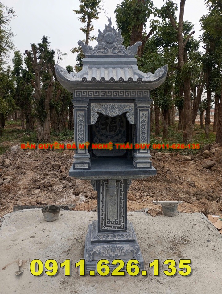 Tông xanh rêu – xanh đen cổ kính, phù hợp văn hóa tâm linh miền Bắc.